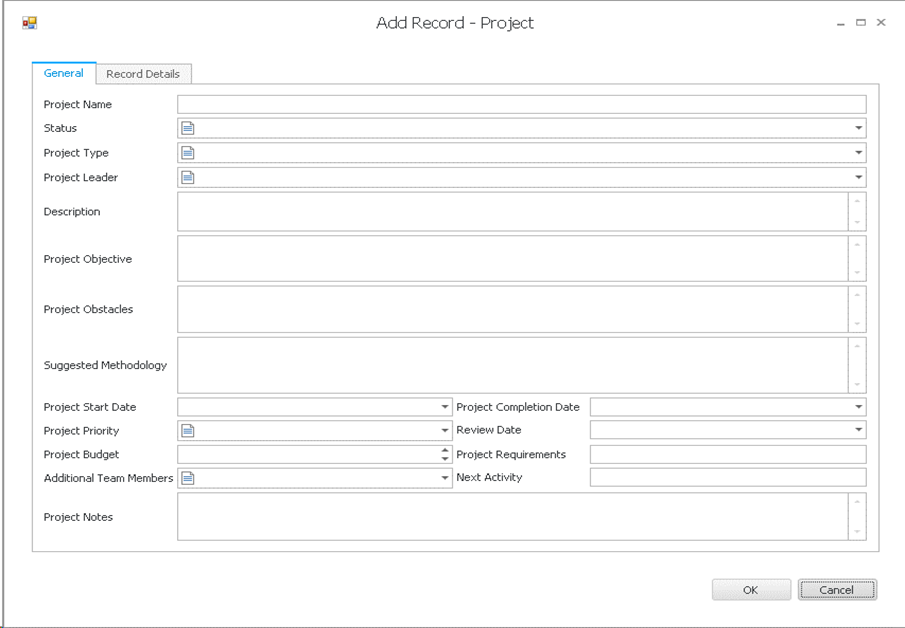 A customised table nests under your Contacts, Companies, Groups, and/or Opportunites creating a spreadsheet type functionality. Unlike spreadsheets though, each row represents a self-contained collection of data that can be linked to one or more contacts, companies, groups, or opportunities and can also be reassigned to others as needed.